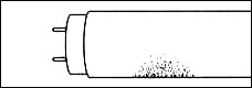 水銀粒子付着 ランプ中央部の下側などに水銀の粒子が付着する現象。交換する必要は全くありません。 |